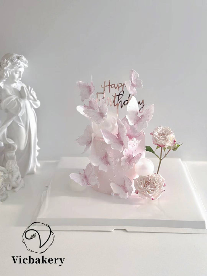 pinky rose butterfly cake